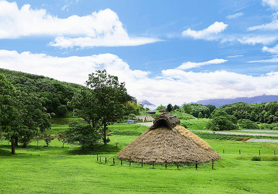 信濃境駅をスタート。道すがら湧水があるのを見学しながら藤内遺跡、居平遺跡を経て井戸尻遺跡に到着。 再現された竪穴式住居や富士山、南アルプスの景観を眺望。 縄文考古館の展示物を見学しつつ『縄文農耕論』も学べるコースです。